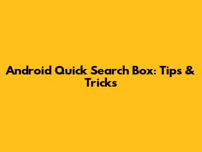 Android Quick Search Box: Tips & Tricks