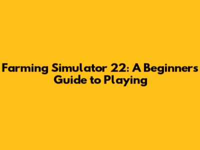 Farming Simulator 22: A Beginner's Guide To Playing