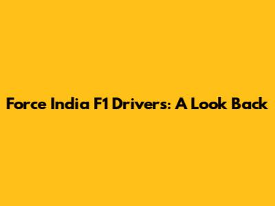 Force India F1 Drivers: Who Were They?