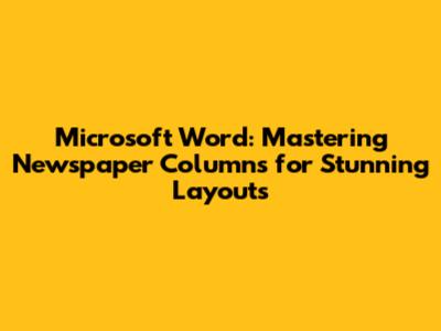 Microsoft Word: Mastering Newspaper Columns For Stunning Layouts