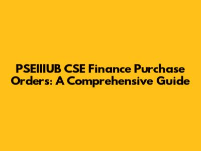 PSEIIIUB CSE Finance Purchase Orders: A Comprehensive Guide
